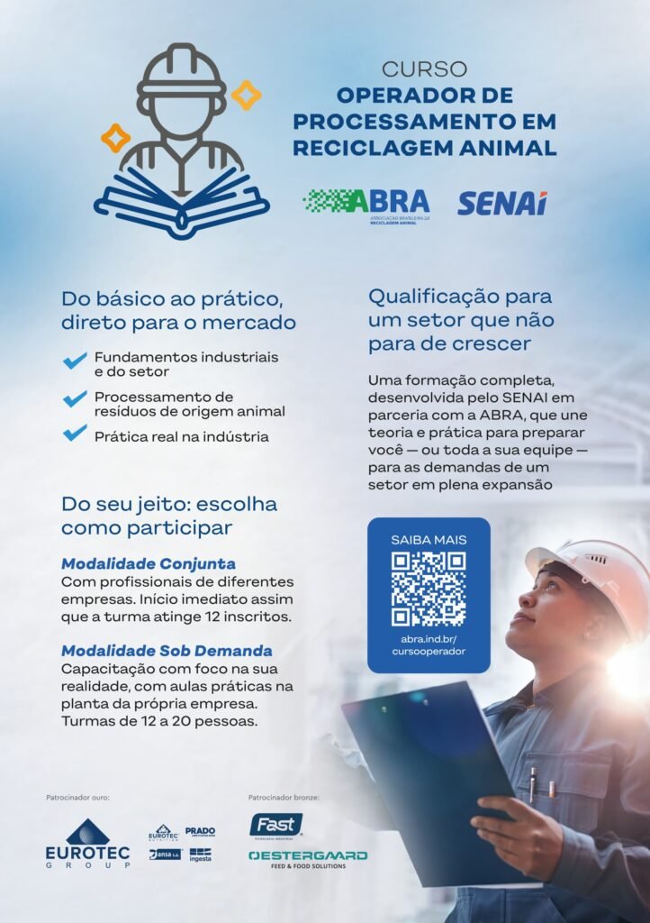 Com duas modalidades de participação — conjunta ou sob demanda —, o curso é voltado a trabalhadores da indústria de reciclagem animal e oferece conteúdos sobre fundamentos industriais, processamento de resíduos de origem animal e prática real em planta. A formação é parte do compromisso da ABRA com o desenvolvimento do setor e a valorização de quem move essa cadeia todos os dias.