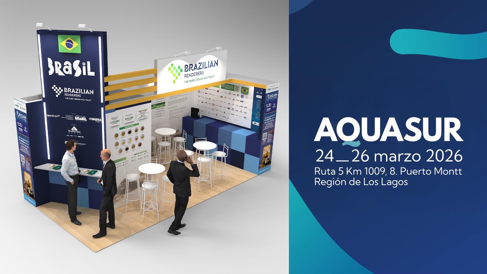 O Brazilian Renderers, uma parceria entre a Associação Brasileira de Reciclagem Animal (ABRA) e a Agência Brasileira de Promoção de Exportações e Investimentos (ApexBrasil), estará presente na AquaSur 2026, de 24 a 26 de março, em Puerto Montt. A iniciativa ocupará o estande R28 na maior feira de aquicultura do Hemisfério Sul, que em 2024 recebeu 22.738 visitantes.