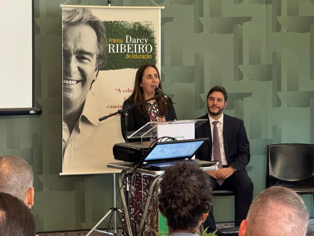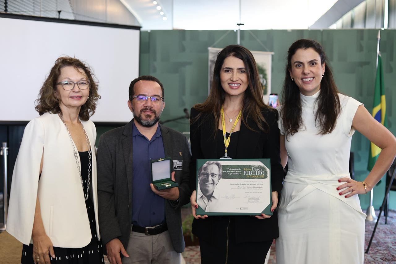 A Associação De Olho no Material Escolar teve seu trabalho reconhecido em âmbito nacional ao ser homenageada com o Prêmio Darcy Ribeiro de Educação 2025. A honraria, uma das mais significativas concedidas pela Câmara dos Deputados, foi entregue na última quarta-feira, dia 12 de novembro, em uma cerimônia realizada no Salão Nobre da Casa.