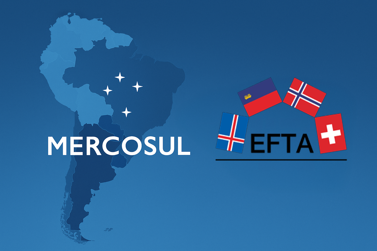 Composta por Suíça, Noruega, Islândia e Liechtenstein, a EFTA firmou com o Mercosul um tratado que cria uma zona de livre comércio com quase 300 milhões de pessoas e um PIB combinado de mais de US$ 4,3 trilhões. O acordo prevê acesso preferencial para mais de 97% das exportações, ampliando oportunidades para empresas brasileiras e fortalecendo a presença do país no mercado europeu.