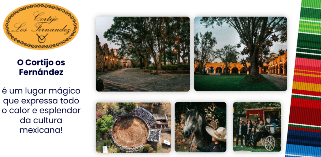 Agora, em Guadalajara, será a vez de viver a magia de um rancho típico mexicano, o Cortijo Los Fernández, um espaço tradicional que une a alma da cultura mexicana à elegância de uma recepção internacional.