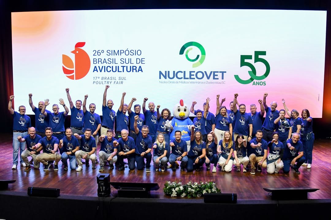 Promovido pelo Núcleo Oeste de Médicos Veterinários e Zootecnistas (Nucleovet), o Simpósio percorreu temas estratégicos como sanidade, nutrição, abatedouro, sustentabilidade e gestão de mercado. Em paralelo, a 17ª Brasil Sul Poultry Fair reuniu mais de 70 empresas em um ambiente dedicado a tecnologias, soluções e troca de experiências entre indústria, pesquisa e campo.