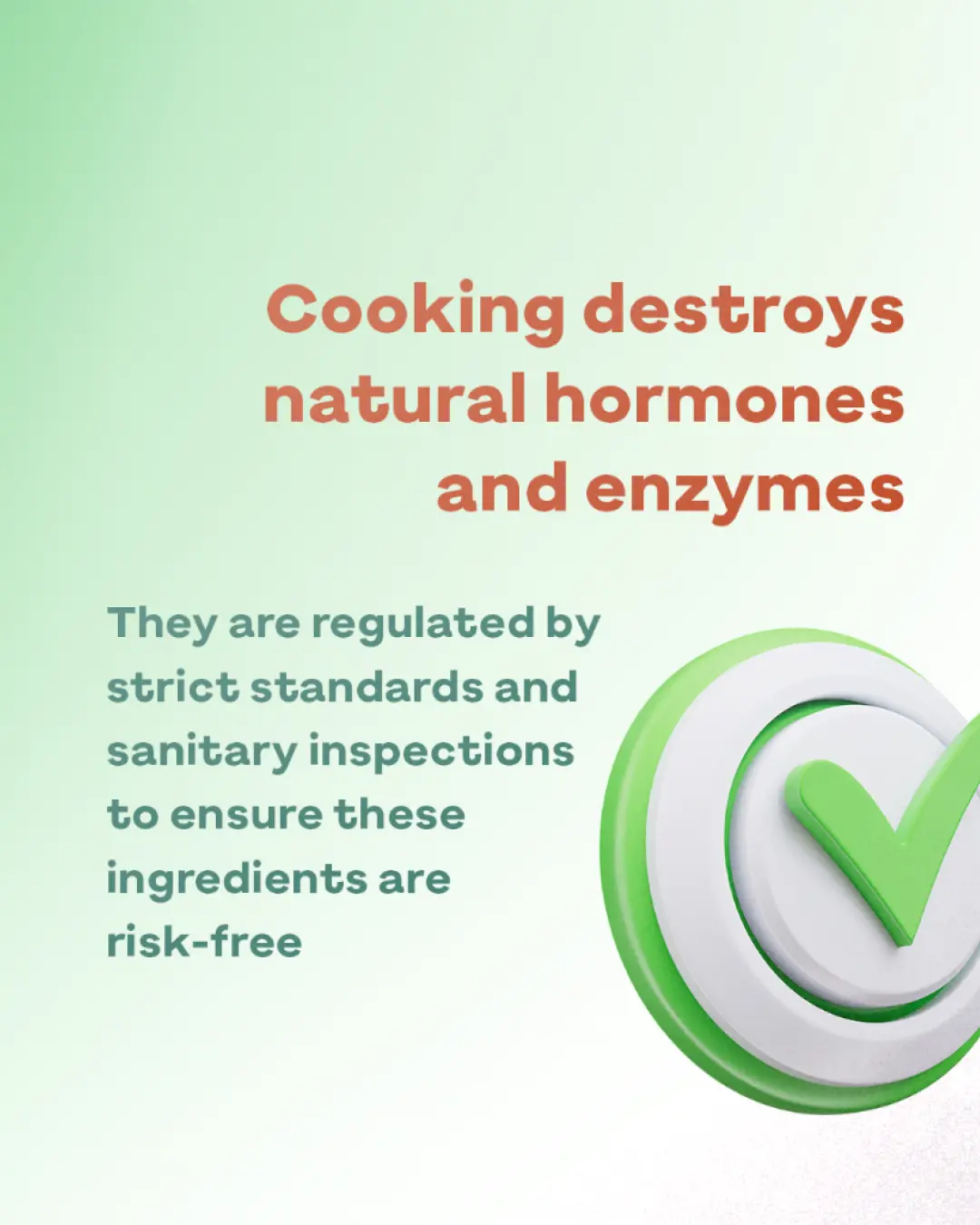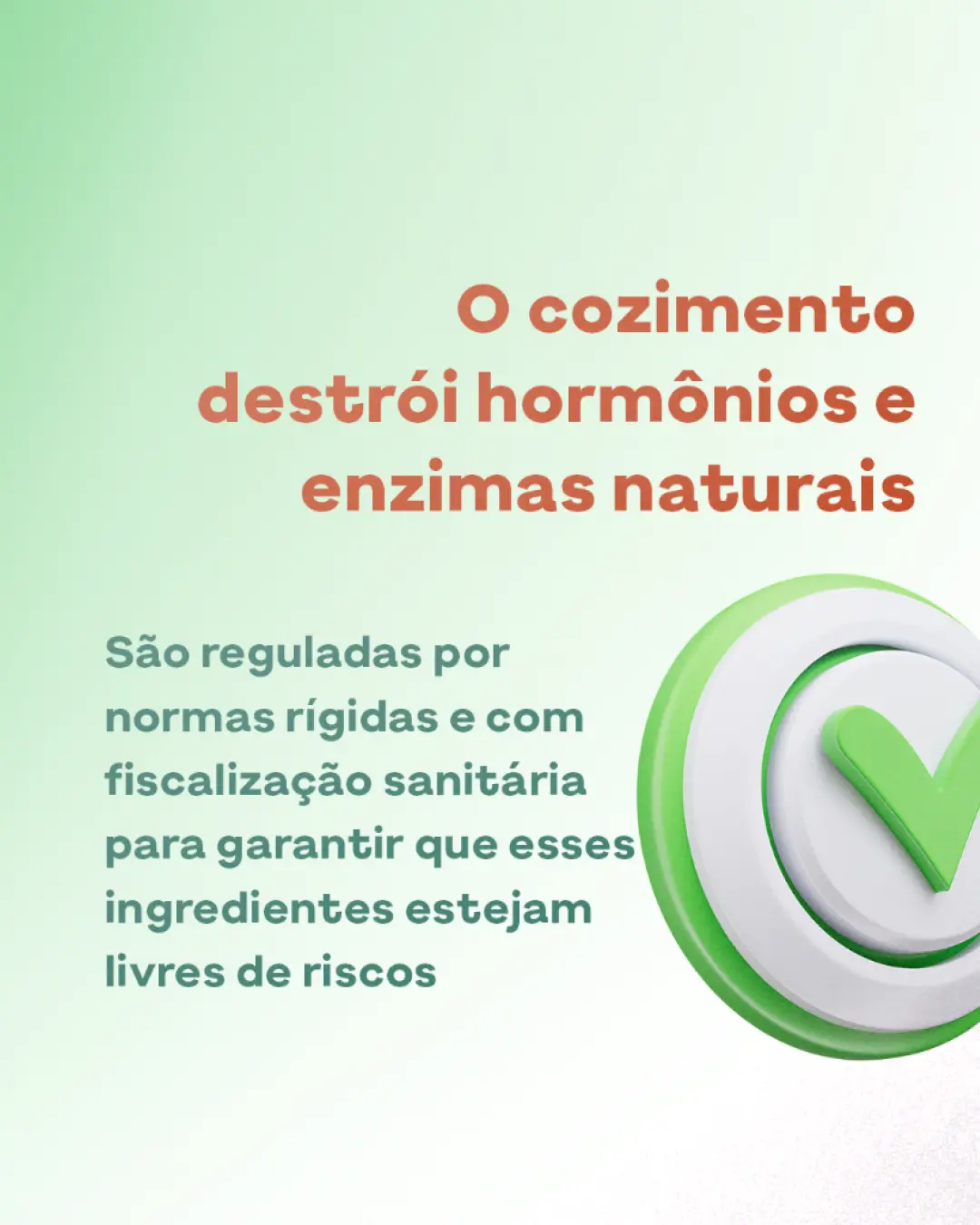 ❌ FAKE! Nenhum hormônio é adicionado ou permanece ativo após o processo.