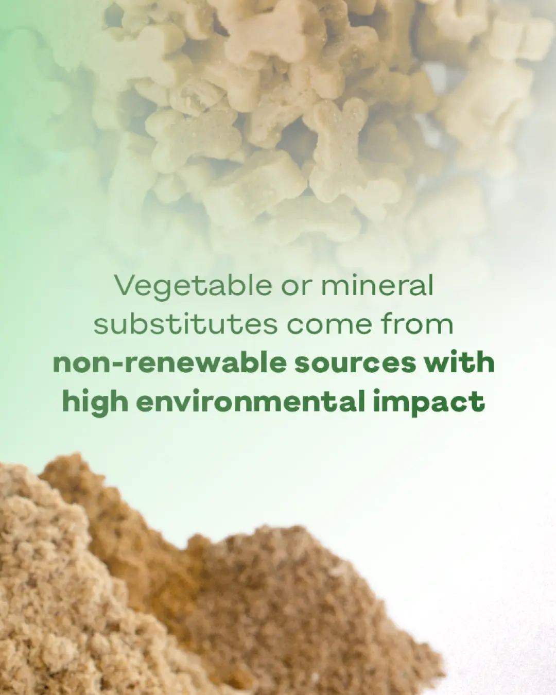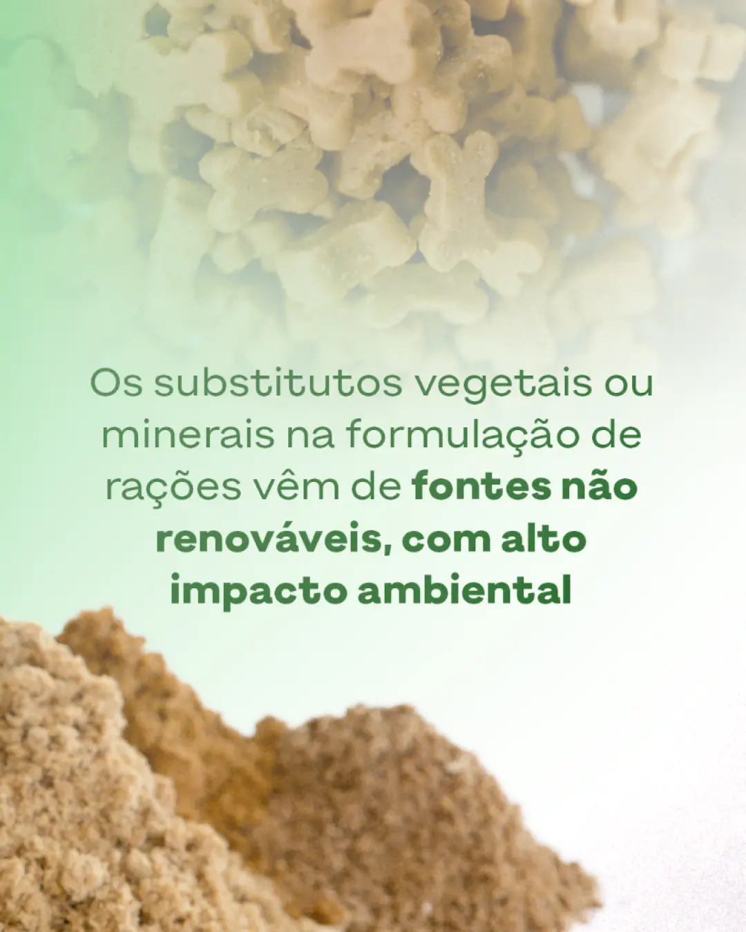 Os substitutos vegetais ou minerais na formulação de rações vêm de fontes não renováveis, com alto impacto ambiental.