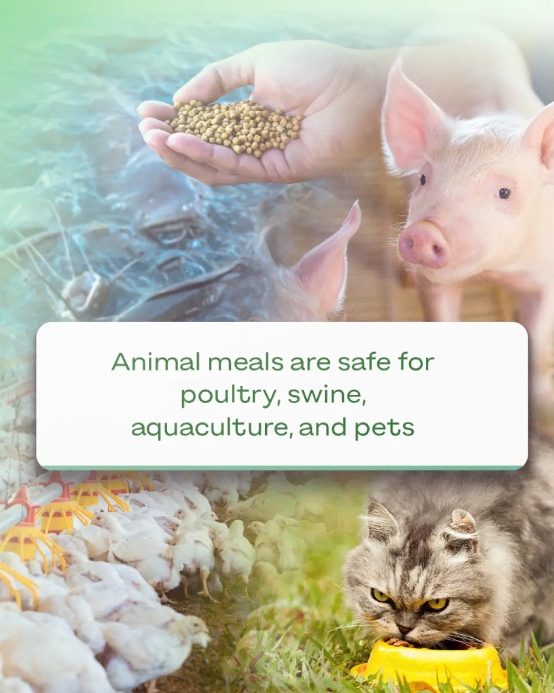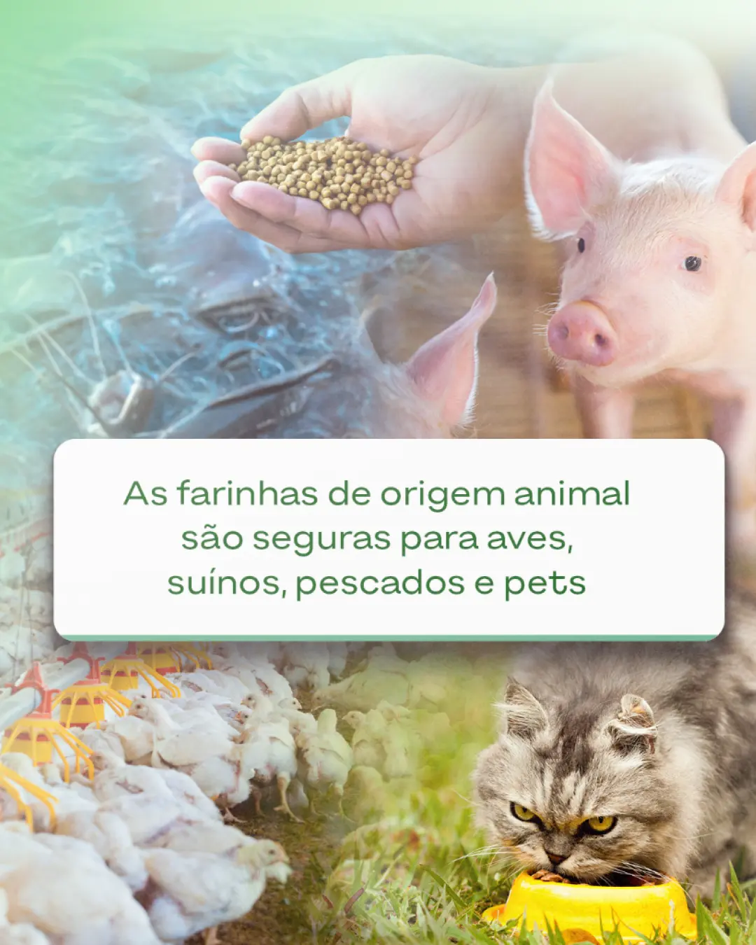 As farinhas de origem animal são seguras para aves, suínos, pescados e pets.