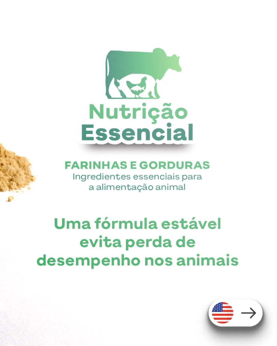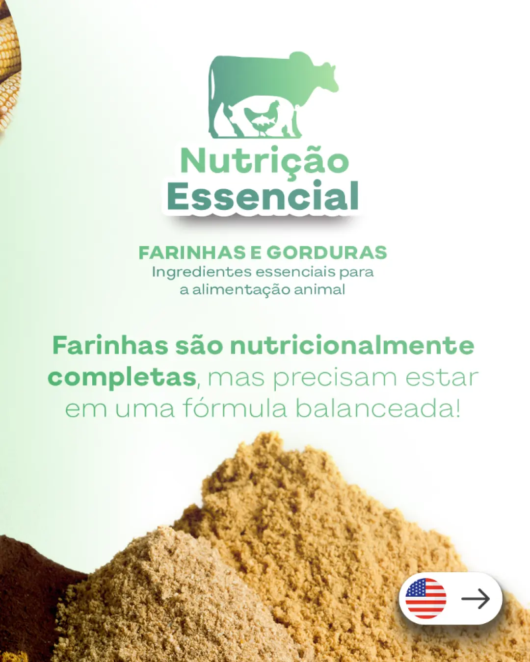 As farinhas e gorduras animais melhoram a eficiência alimentar, reduzem a necessidade de suplementos e garantem ganho de peso consistente.