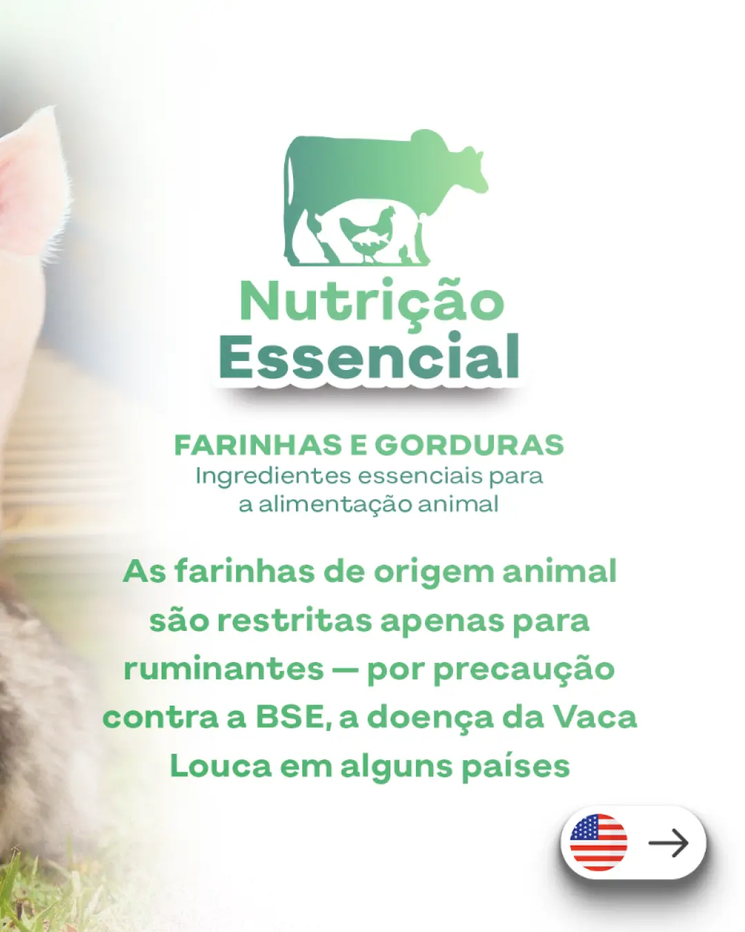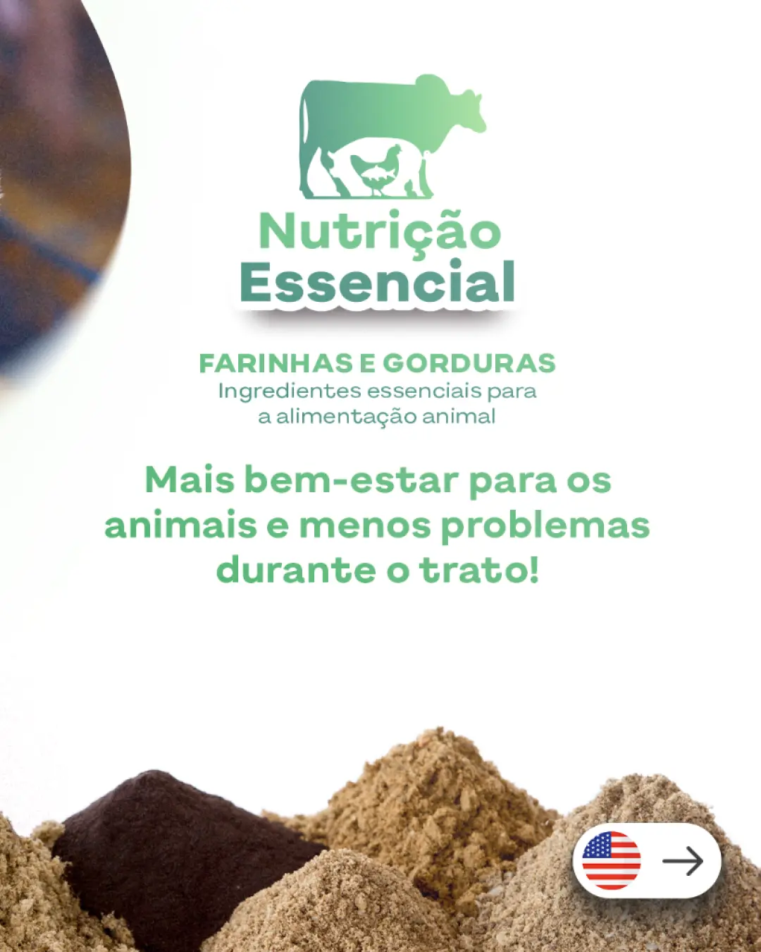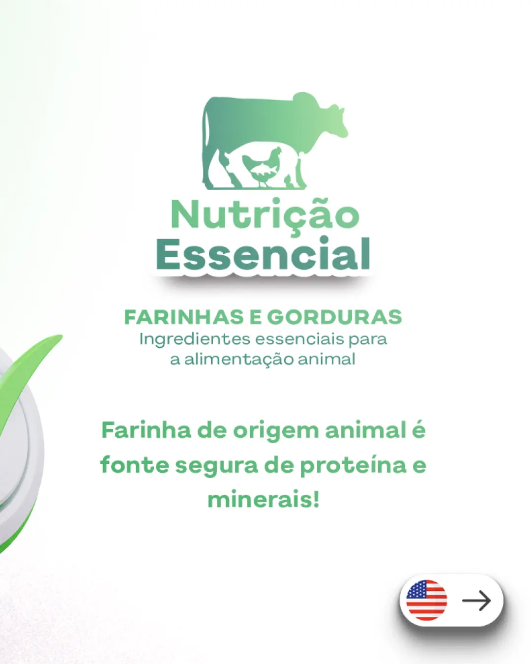 🐷🐔🐟 Na nutrição de suínos, aves e peixes, cada ingrediente conta — e as farinhas e gorduras de origem animal fazem toda a diferença. Elas entregam proteína de alta qualidade, energia metabolizável e contribuem com nutrientes essenciais para o crescimento e desenvolvimento dos animais.