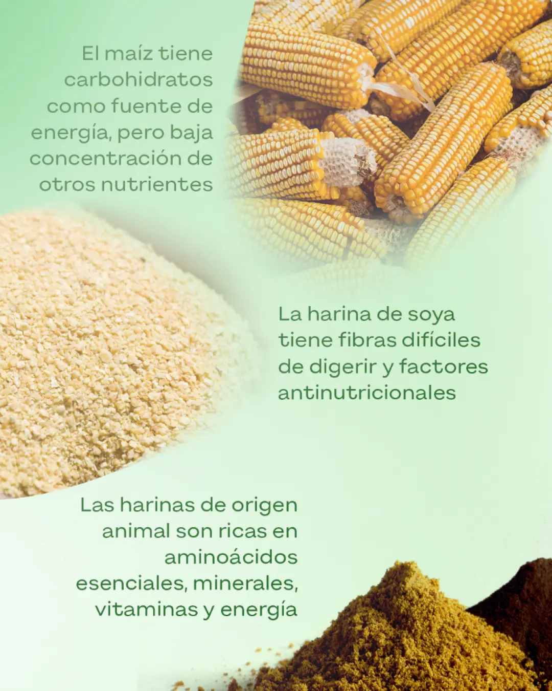 As farinhas de origem animal são ricas em aminoácidos essenciais, minerais, vitaminas e energia.