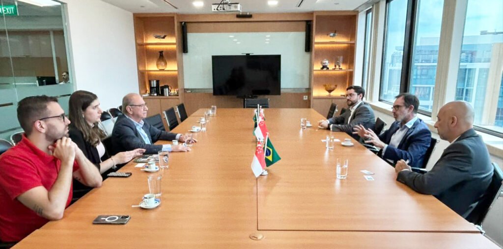 A reunião contou com a presença do embaixador Luciano Mazza de Andrade, do adido agrícola Luiz Caruso, da assessora sênior Camila Agner D’Aquino e do chefe do Setor Comercial Felipe Pinchemel. O encontro teve como objetivo alinhar os detalhes da rodada de negócios programada para esta quinta-feira (22), além de debater oportunidades para a ampliação das exportações brasileiras de produtos da reciclagem animal no mercado singapurense.
