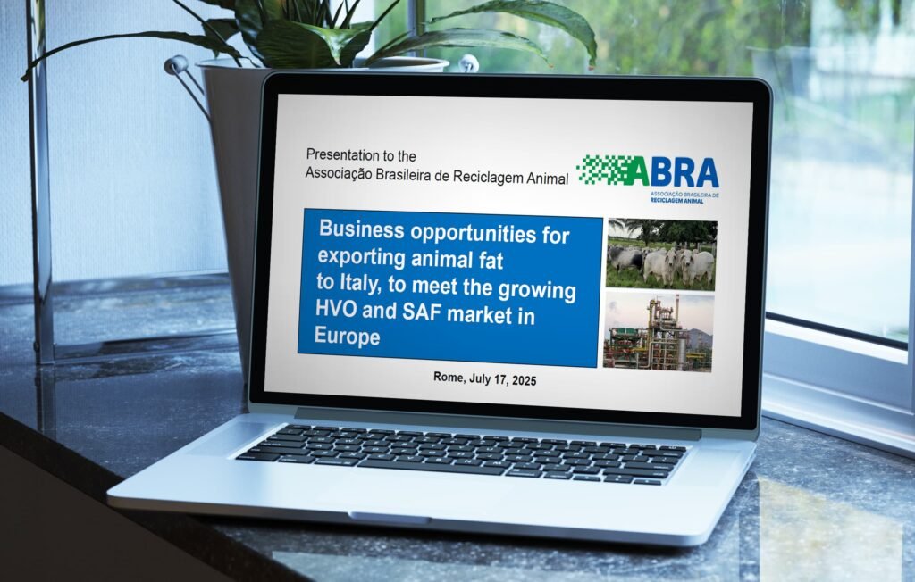 Com a demanda por energia limpa crescendo rapidamente na Europa, a gordura animal brasileira desponta como uma alternativa estratégica para abastecer o setor de biocombustíveis. Foi o que destacou Rafael Ramirez, representante da empresa suíça Oil & Bio Trade SA, em apresentação realizada durante a reunião da Câmara de Comércio Exterior da ABRA (CAMEX ABRA), na última semana (17).